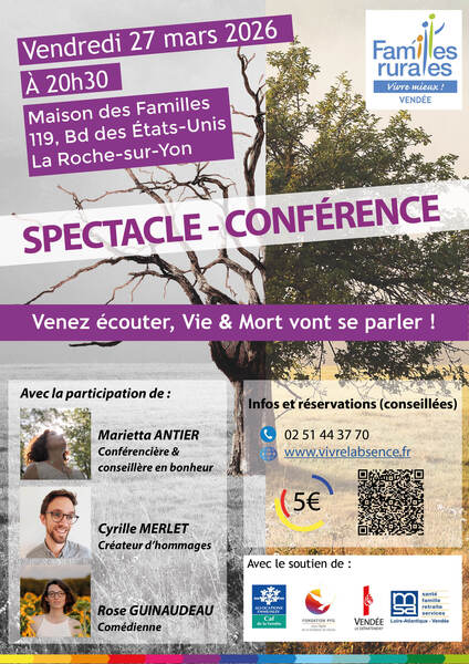 Ce SPECTACLE-CONFÉRENCE a pour objectif de sensibiliser aux thématiques de la vie et de la mort, d’ouvrir un espace d’échange sur un sujet qui reste encore trop tabou, afin de "mieux vivre".